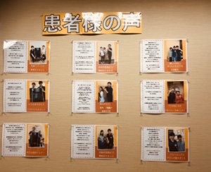 待ち合い室の壁をふと見てみると多数の患者様の声が貼られていました。これは期待できそうですね!